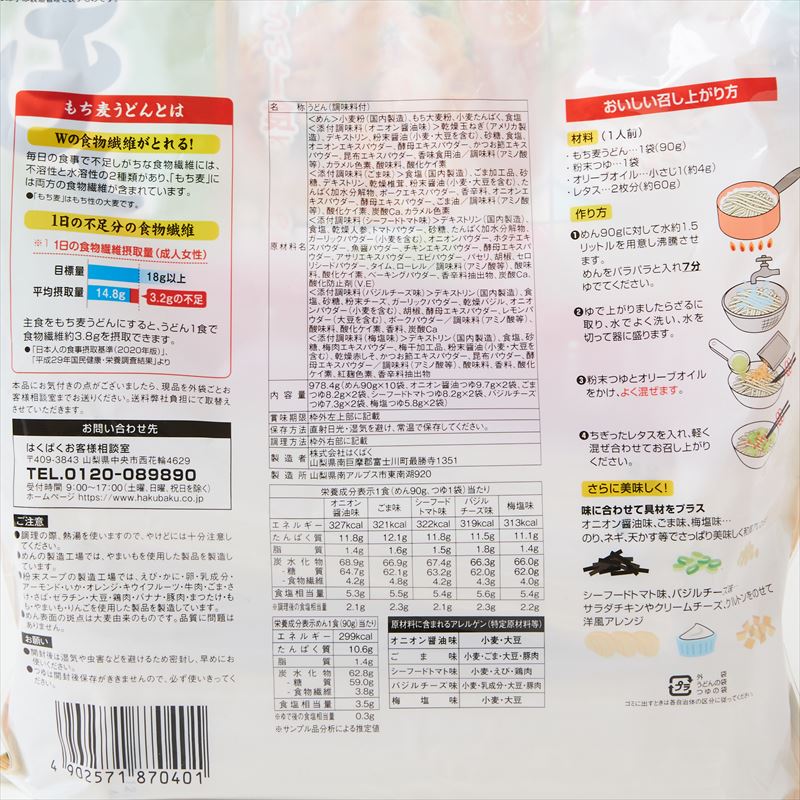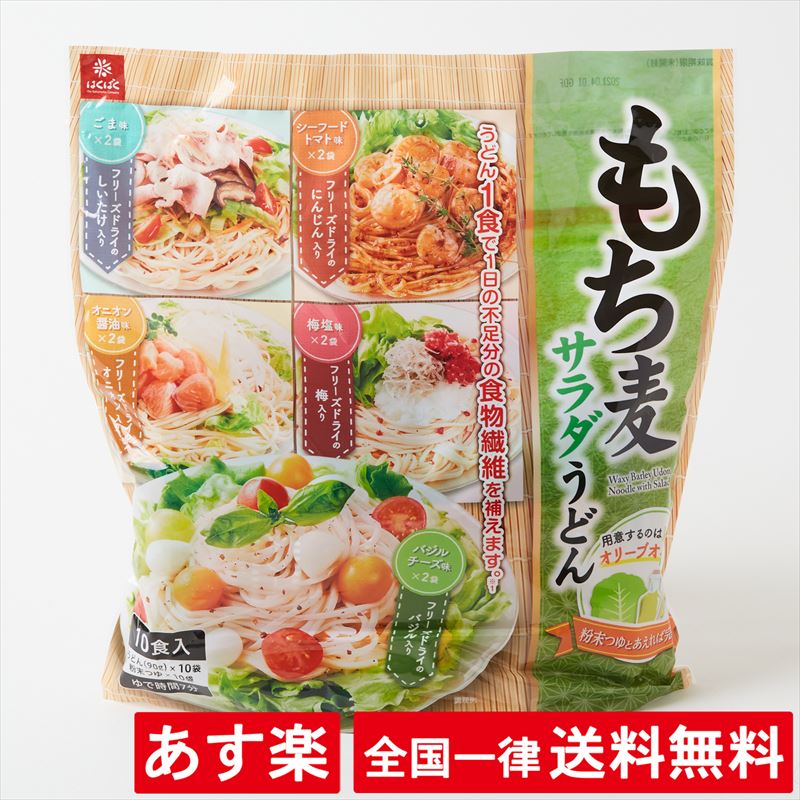 【全国一律送料無料】はくばく もち麦 サラダ うどん 10食 5種類/ごま味/シーフードトマト味/オニオン醤油味/梅塩味/バジルチーズ味 食物繊維【賞味期限2021年4月】【あす楽】