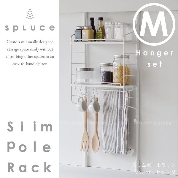 サイズ (約)幅39.5×奥行14.5×高さ70〜105cm セット内容 下支柱×2、棚支柱×2、トレイ×2、フレーム×1、ハンガー×1、S字フック×5 耐荷重 (約)5kgまで(棚支柱一本あたり(約)2.5kgまで) 材質 支柱・棚:鉄・エポキシ樹脂粉体塗装 樹脂部品:ナイロン樹脂 EVA樹脂 ねじ類:鉄・メッキ キーワード キッチン 突っ張り ラック SPLUCE スプルース スリムポールラック ハンガーset M SPL-2 キッチンラック つっぱり 突ぱり スリム 収納 棚 台所 システムキッチン 工具不要 201709-01