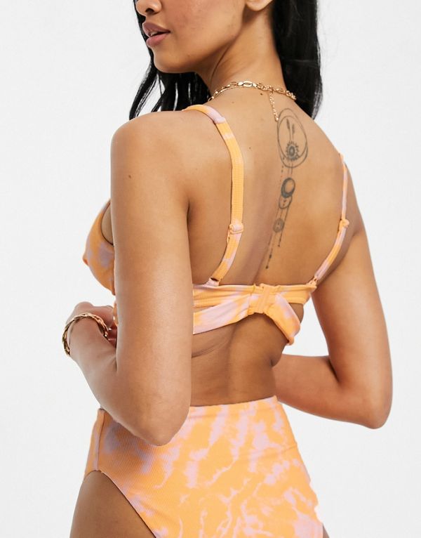 エイソス ASOS asos ASOS DESIGNのフルバストミックスとマッチするワイヤー入りラップビキニトップ、サンブリーチオレンジタイダイ 水着 レディース 女性 インポートブランド 小さいサイズから大きいサイズまで