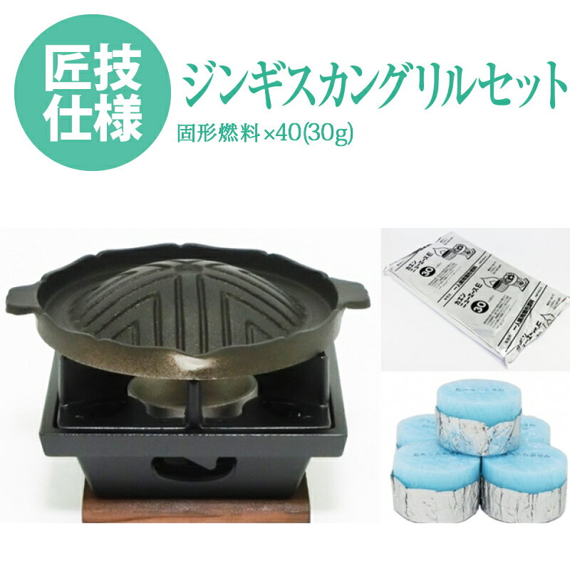 ご自宅が料亭に!懐石鍋セット | ジンギスカン グリル + 五徳が両面使える いろりコンロ 木台・火皿 付 セット + 固形燃料 30g40個入の お得なセット | 日本製