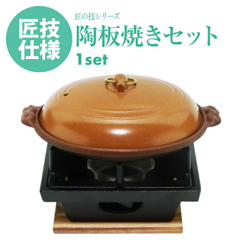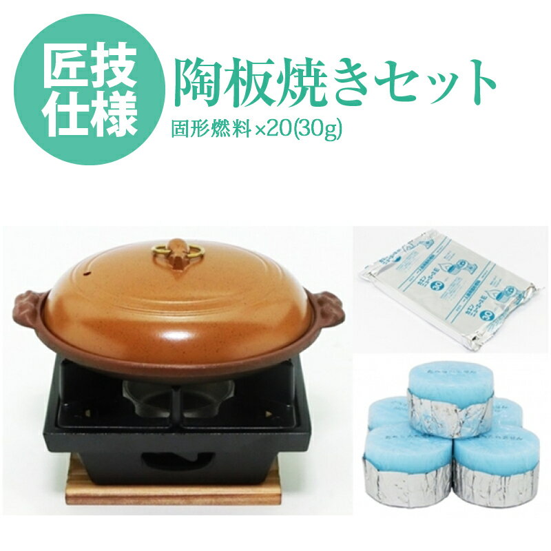 懐石 鍋 セット 陶板焼き + 五徳が両面使える いろりコンロ セット (木台 ・ 火皿 付) + 固形燃料 30g20個入の お得なセット日本製 国産