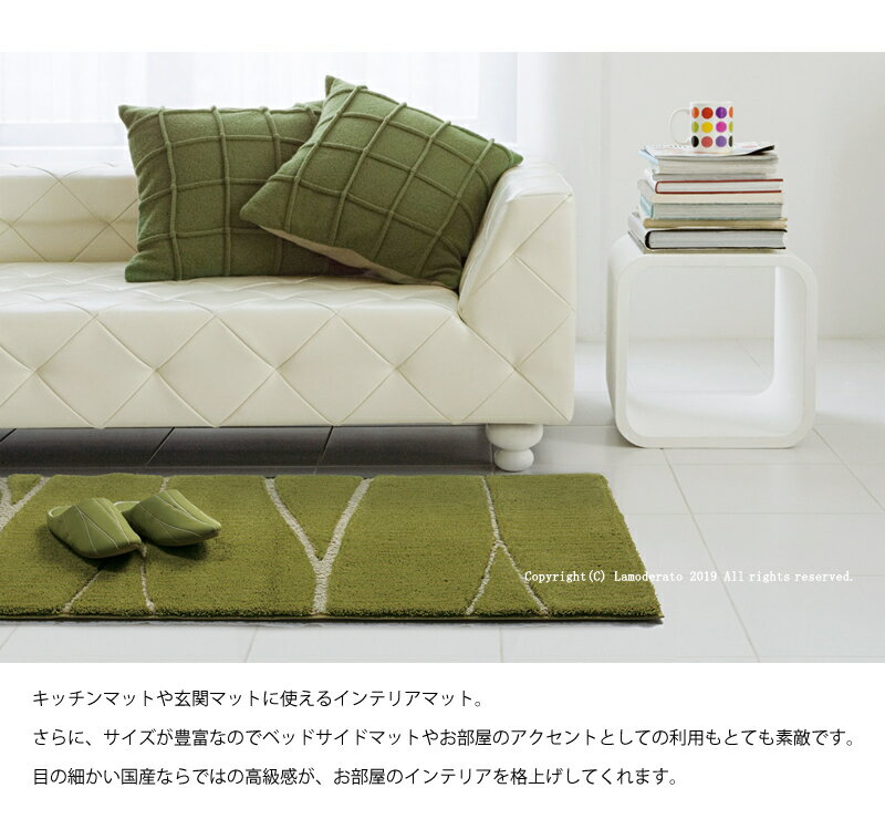 ⇒ ギフト対応について サイズ 約 55×85cm 素材 アクリル100% (抗菌防臭・吸水素材) カラー グリーン 原産国 日本 ご注意 柔軟剤使用不可 洗濯の際に柔軟剤を使用すると、マットの裏加工剤が柔らかくなって粘ついたり、裏加工材が床に付着して取れない場合があります。